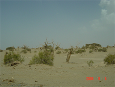 枯死的胡杨和活着的红柳